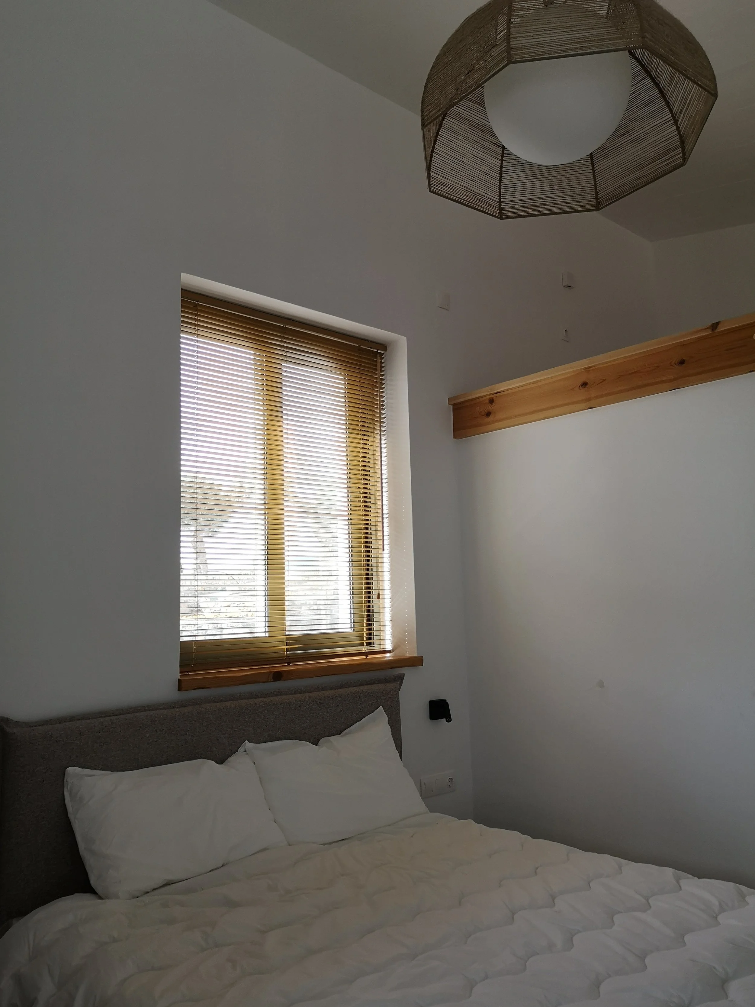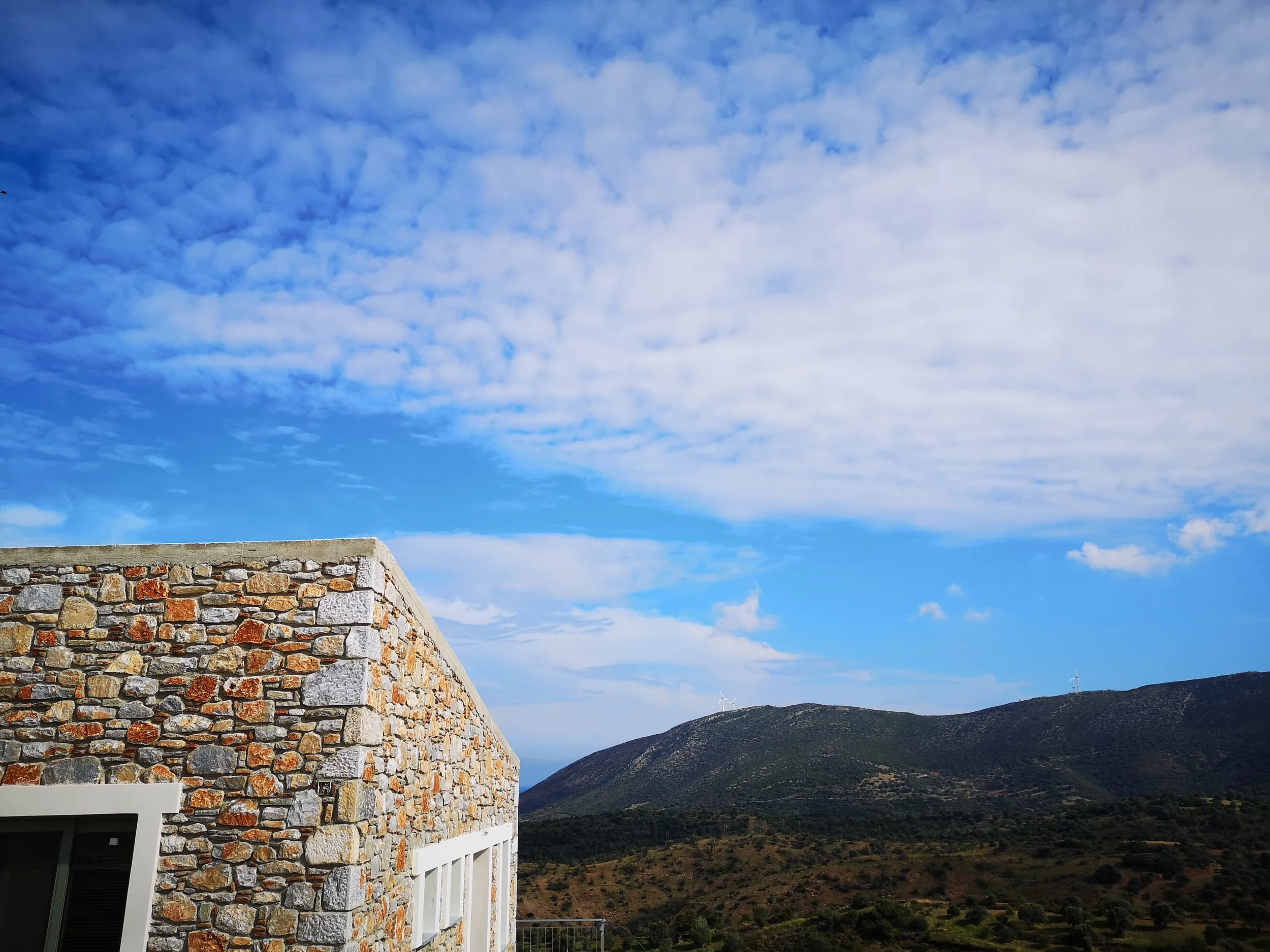Inside, board formed concrete ceilings, wooden elements crafted by local carpenters, exposed stone accents and a warm palette give each space an airy and inviting appeal. Seamlessly integrated into our rural landscape and positioned looking towards the Aegean and a view to the sun rising from the hilltops, our houses offer abundant natural light and a spacious layout creating a relaxing and inviting environment.